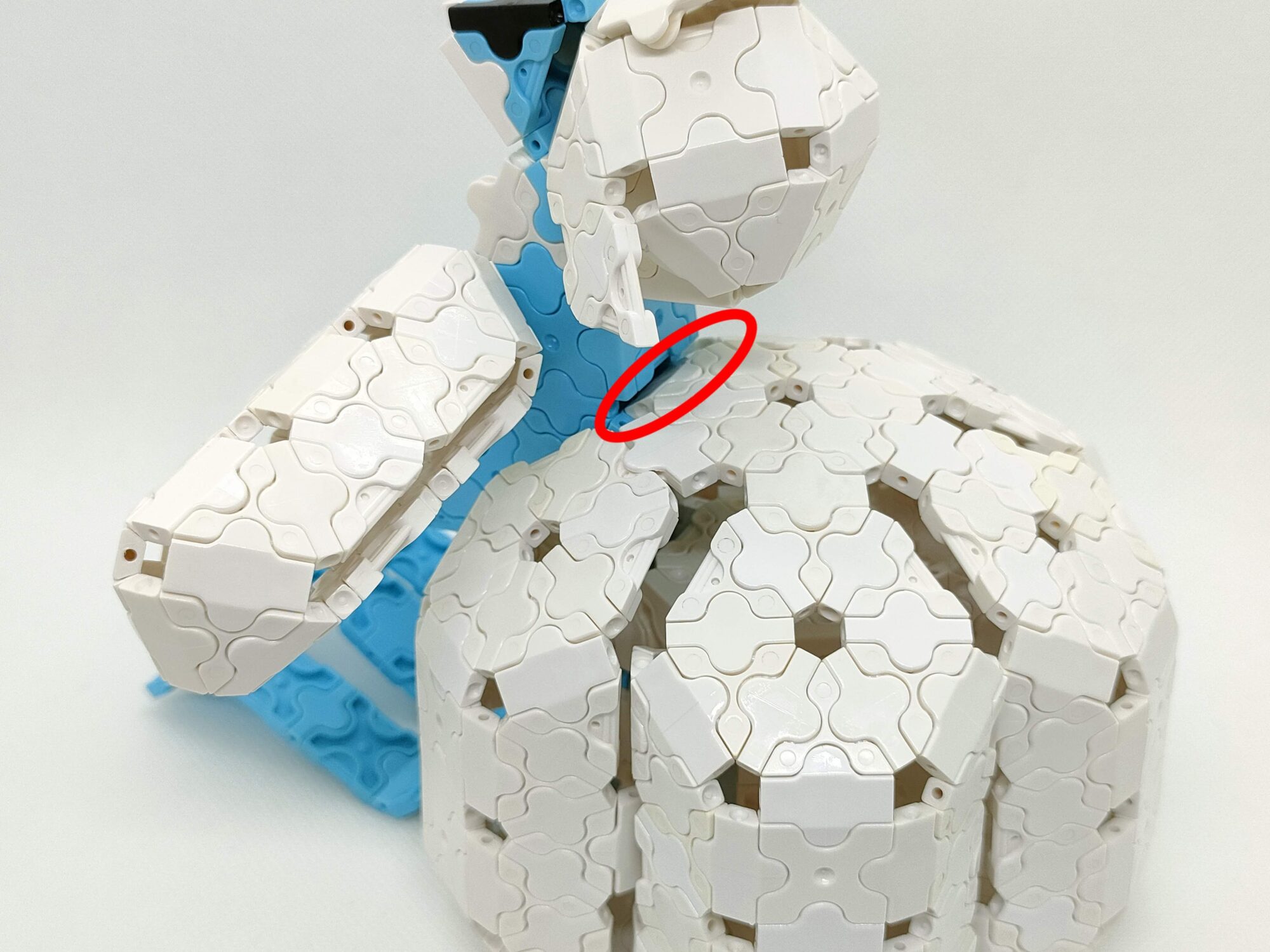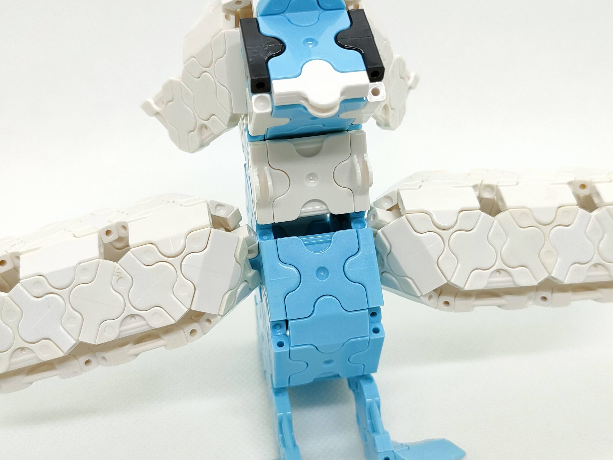 からだのしろいパーツをはさむようにして、つばさをつなげます。